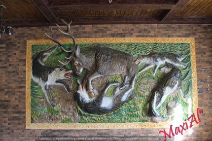 Оздоблення оздоровчих комплексів, місць відпочинку, саун та басейнів картинами та барельєфами, розписом, скульптурою по замовленій вами тематиці. Зроблено з водостійких високоякісних матеріалів. Пофарбовано водостійкою фарбою та покрито захисним лаком від механічених пошкоджень. Легко миється.